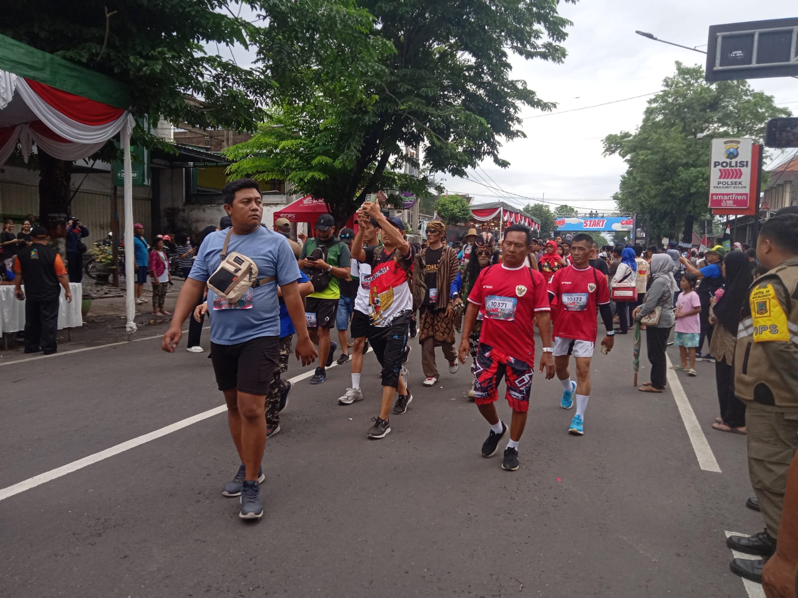 Pemberangkatan peserta gerak jalan start dari Mojokerto dilaksanakan oleh kang PJ sapaan Ali Kuncoro dengan rute terakhir yaitu Tugu Pahlawan kota Surabaya, para peserta dihibur dengan kedatangan artis Happy Salma sebagai bintang tamu.