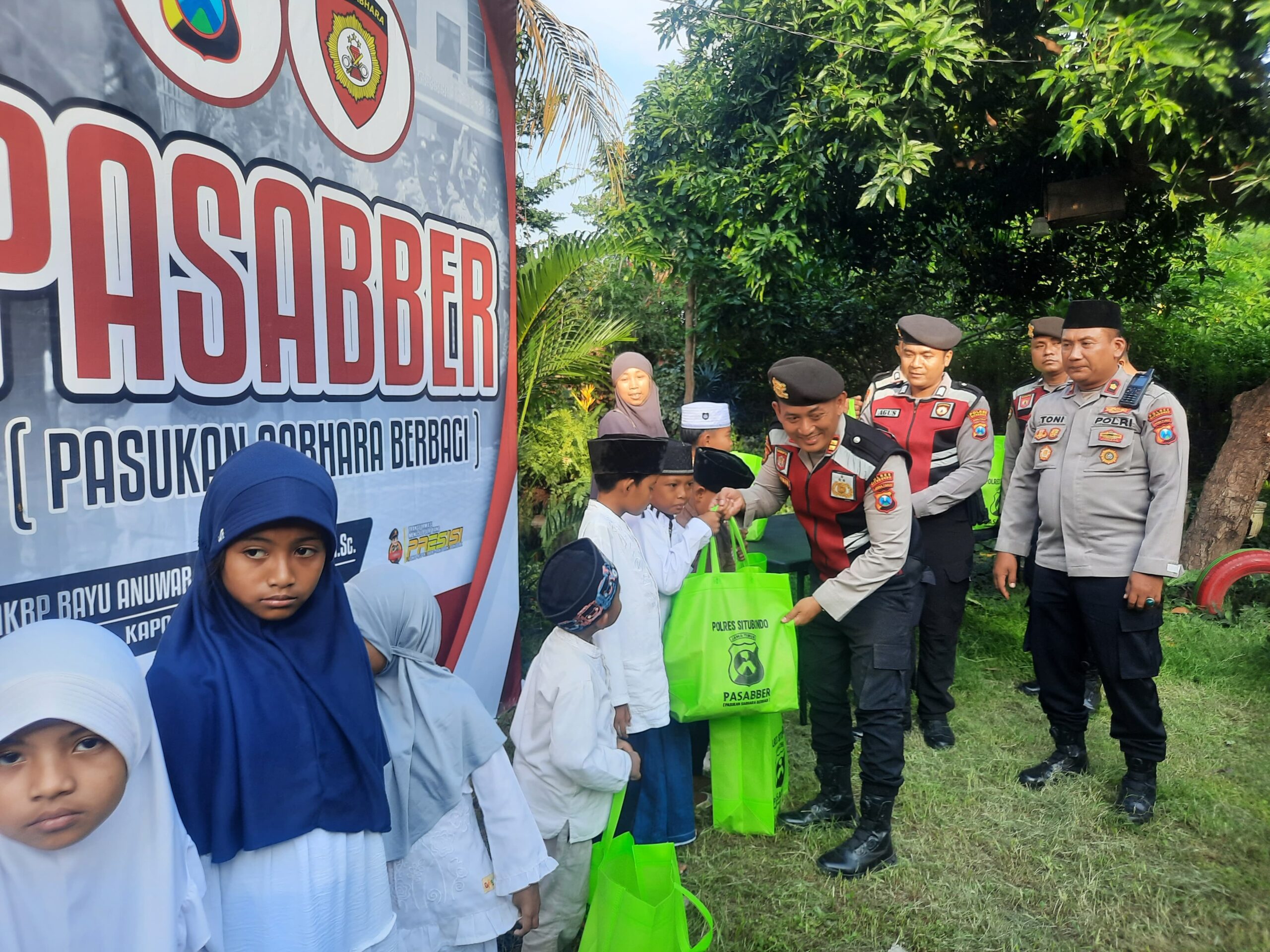 Kapolres Situbondo AKBP Bayu Anuwar Sidiqie, S.H., S.I.K., M.Sc., melalui Wakapolres Kompol Toni Irawan menyampaikan bahwa program Pasabber merupakan wujud kehadiran Polri Untuk Masyarakat yang tidak hanya menjaga kamtibmas, tetapi juga membawa manfaat sosial ditengah masyarakat. “Kami ingin berbagi kebahagiaan dengan anak-anak di sini. Semoga bantuan Al-Qur’an dan perlengkapan ibadah ini menjadi penyemangat mereka untuk terus belajar dan beribadah,” ujarnya.