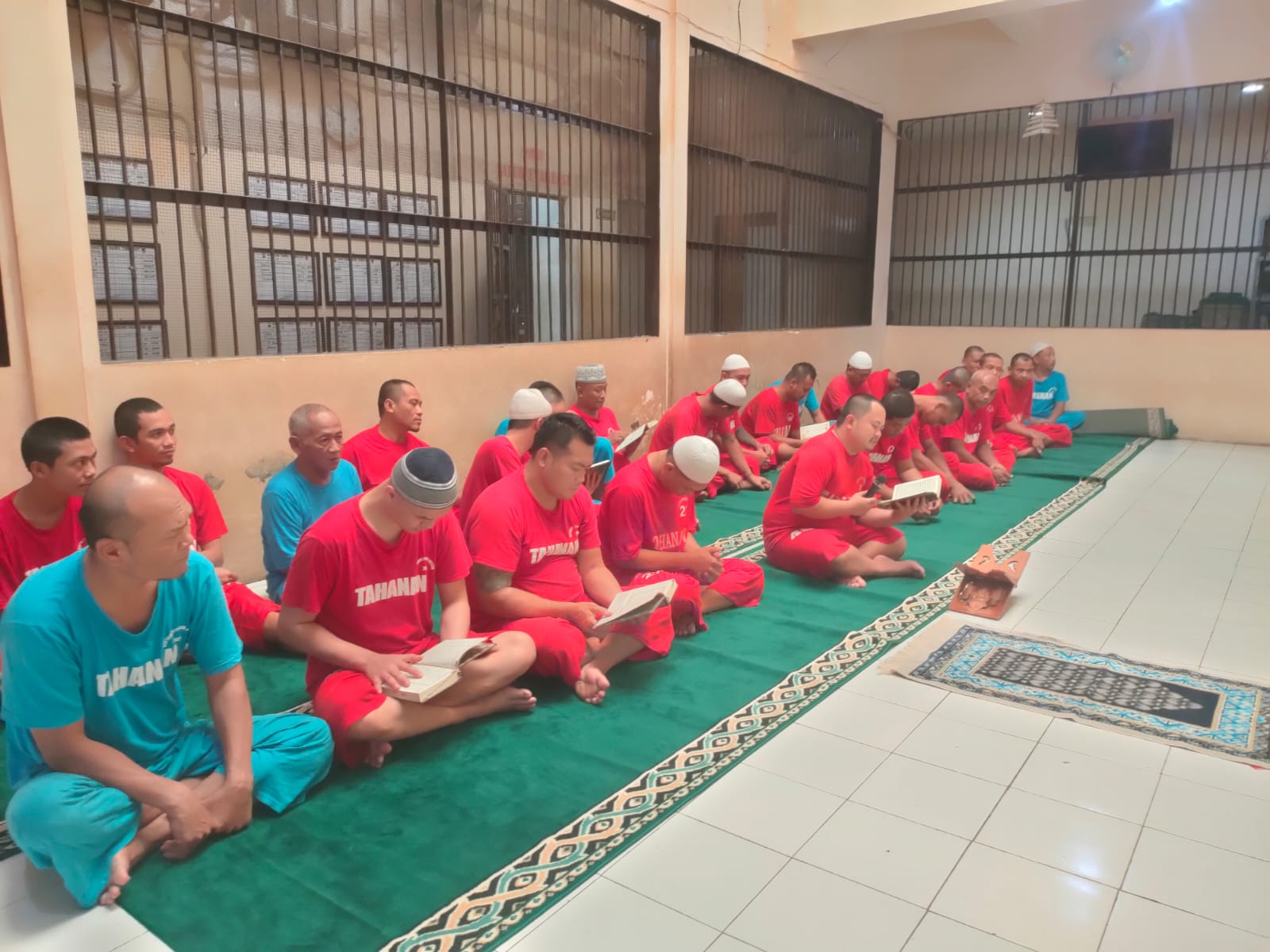 Program membaca Al-Quran ini dimulai pukul 11.00 WIB di Aula Rutan dengan suasana yang penuh khidmat. Para tahanan, yang selama ini menjalani hari-hari di balik jeruji, mengambil kesempatan ini untuk mendekatkan diri kepada Sang Pencipta. Setiap ayat yang dibaca menggema dalam aula, menghadirkan nuansa ketenangan yang tak hanya menyentuh hati para tahanan, tetapi juga seluruh petugas yang menyaksikan.