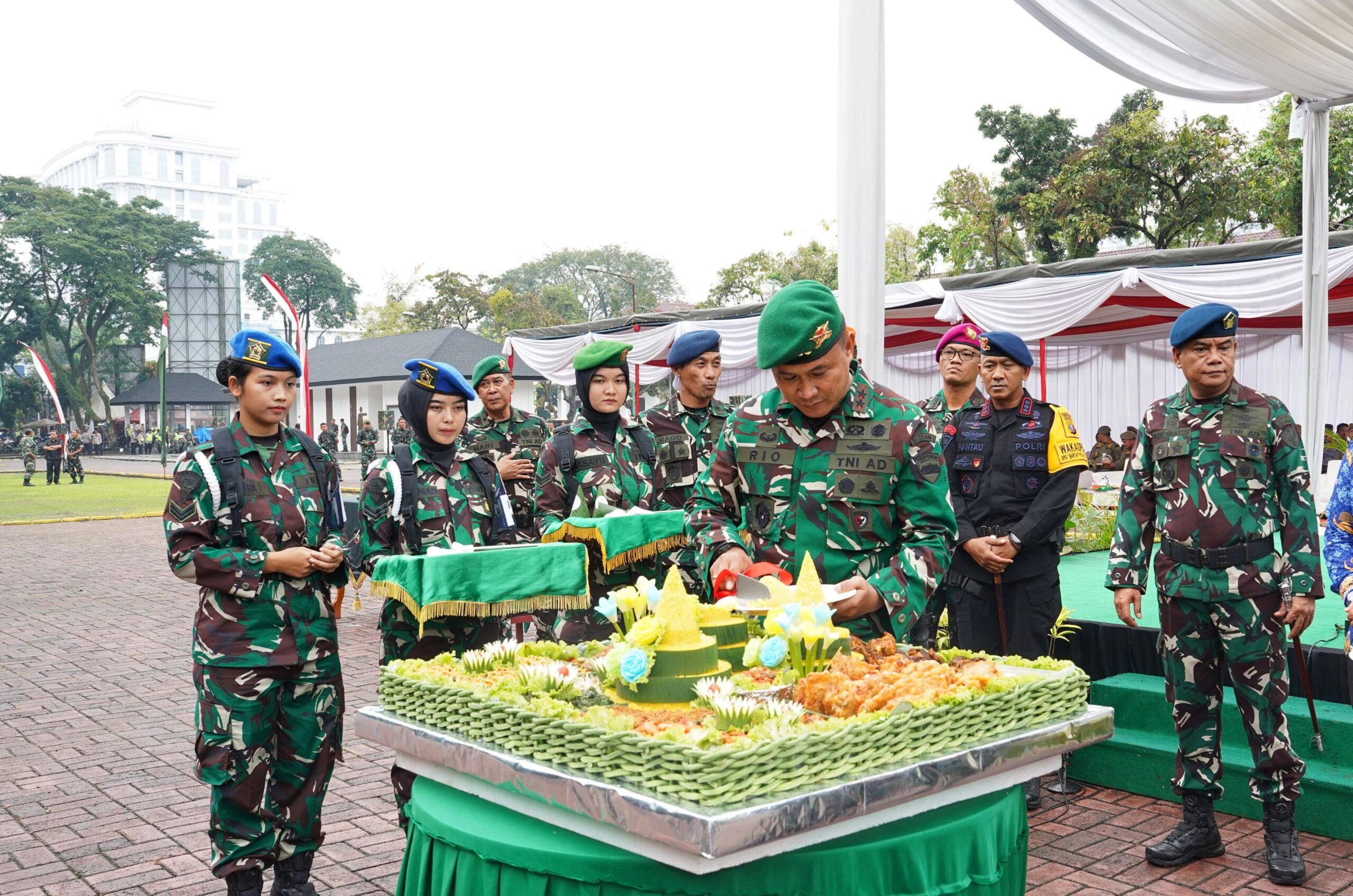 Acara yang berlangsung khidmat ini diakhiri dengan prosesi pemotongan tumpeng ini dihadiri oleh Danlantamal I Belawan, Wakapolda Sumut, para Danrem dan Pejabat Utama Kodam I/BB, Danlanud Soewondo, serta unsur Forkopimda lainnya.(Ag/Hms)