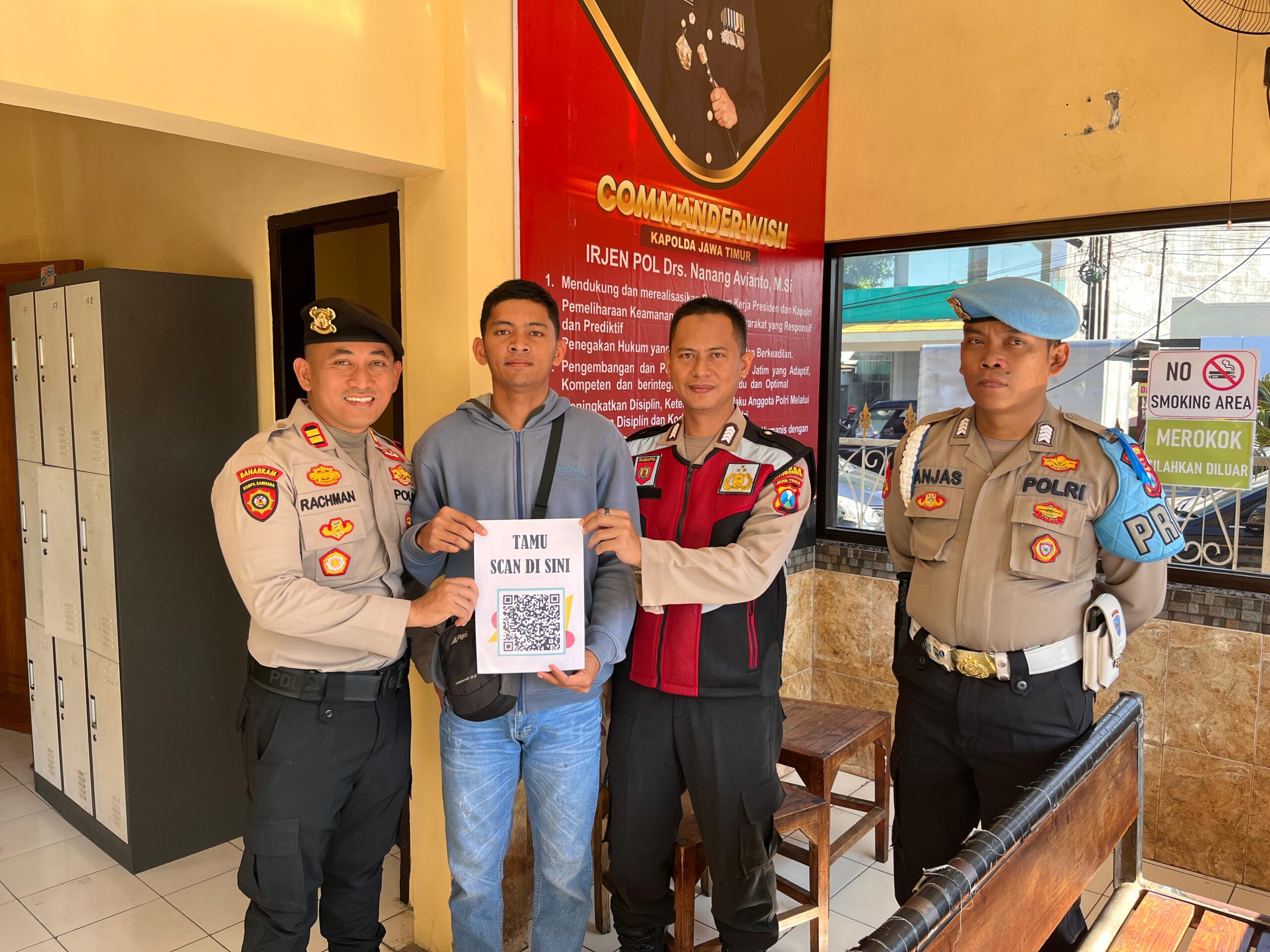 Situbondo, Katapublikjatim – Samapta Polres Situbondo menghadirkan sebuah inovasi baru dalam layanan publik dengan meluncurkan sistem registrasi tamu berbasis teknologi digital. Inovasi ini menggantikan metode konvensional pencatatan tamu melalui buku manual dengan sistem digital yang terintegrasi langsung menggunakan Google Form dan Barcode Scan.