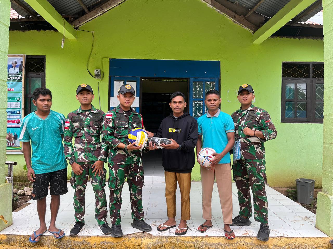 Sementara itu, Pos Inbate yang dipimpin oleh Wadanpos Sertu Apdilie melaksanakan penyerahan sarana olahraga berupa bola voli, bola kaki, dan jaring net voli kepada Sekretaris Kantor Desa Inbate, Bapak Janu, di Kecamatan Bikomi Nilulat, Kabupaten Timor Tengah Utara (TTU).