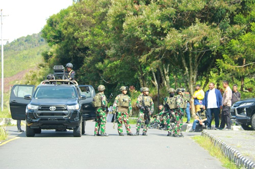 Katapublik Puncak Jaya, Dansatgas Letkol Inf Fiska Bagus Tri Sunaryanto mendampingi Kapolres Puncak Jaya AKBP Kuswara, dan PJ Bupati Puncak Jaya Yopi Morib, untuk mengantisipasi Konflik horizontal dan bentrokan antar massa pendukung pasangan calon Bupati di Kabupaten Puncak Jaya, Selasa (04/03/2025).