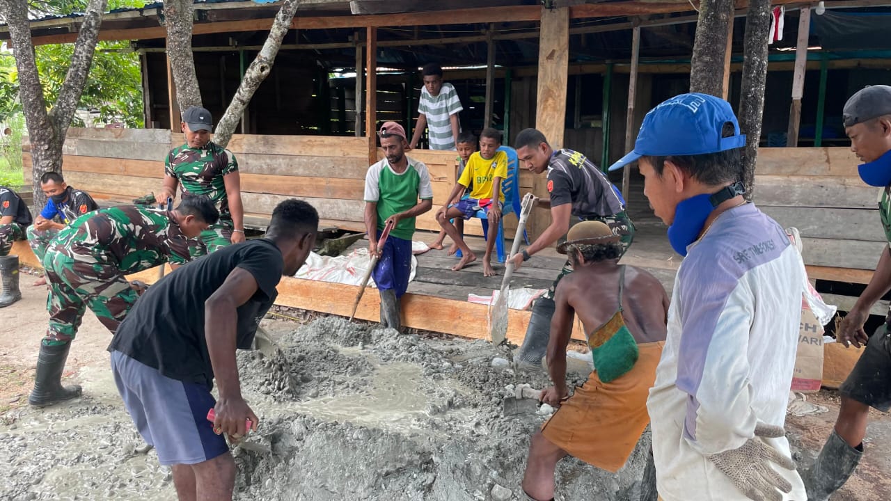 Satgas Yonif 642/Kps Laksanakan Karya Bakti Bersama Masyarakat Kampung Maroro