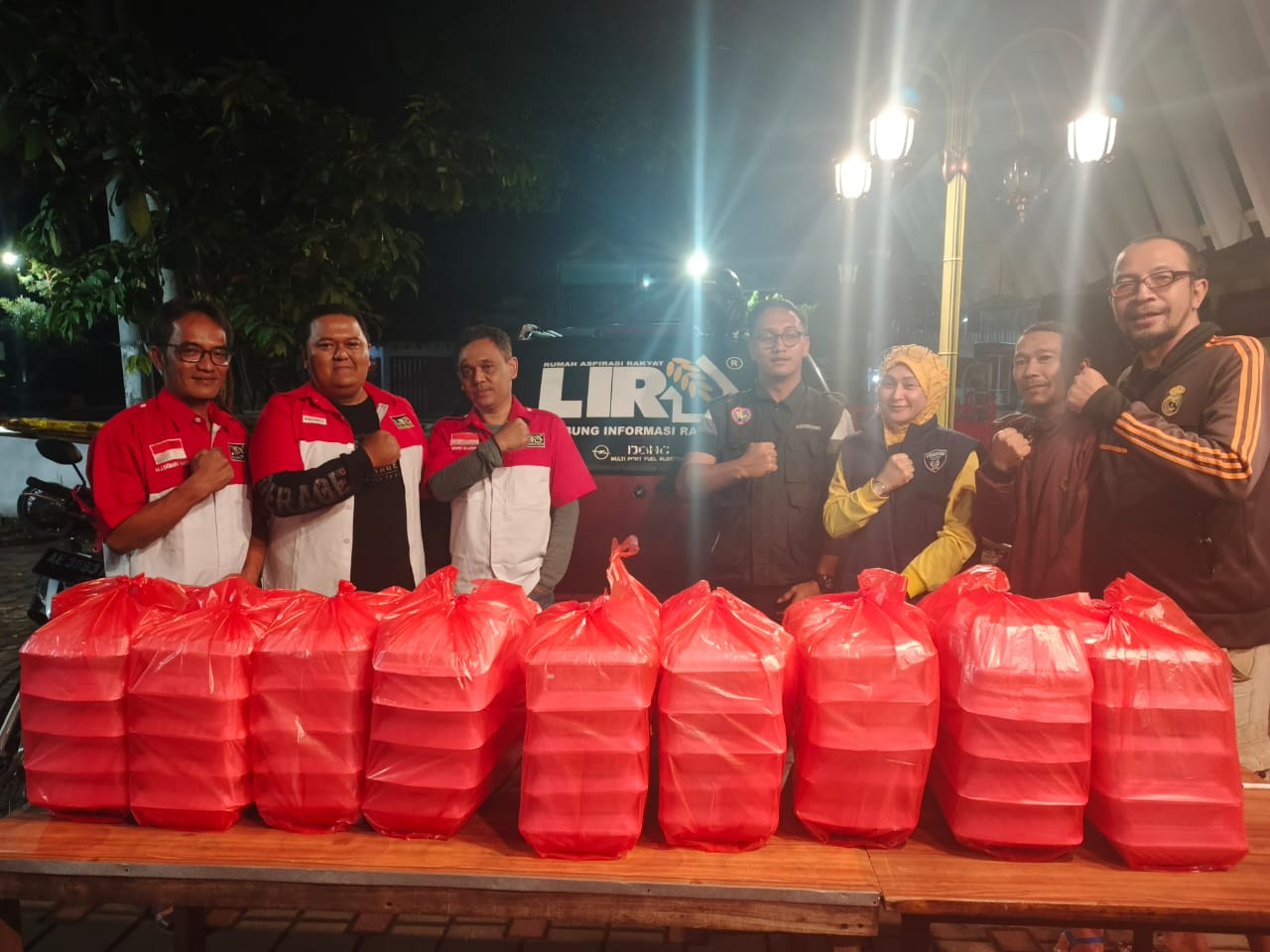 Giat tersebut dihadiri oleh perwakilan LIRA dari Divisi Kehumasan, Darto Afan selaku Bendahara LIRA, SP3 Endang Puji Purwani serta tokoh warga setempat bernama Aris Goplo bersama-sama saling membantu kelancaran saat proses memasak, mengemas sampai pendistribusiannya.