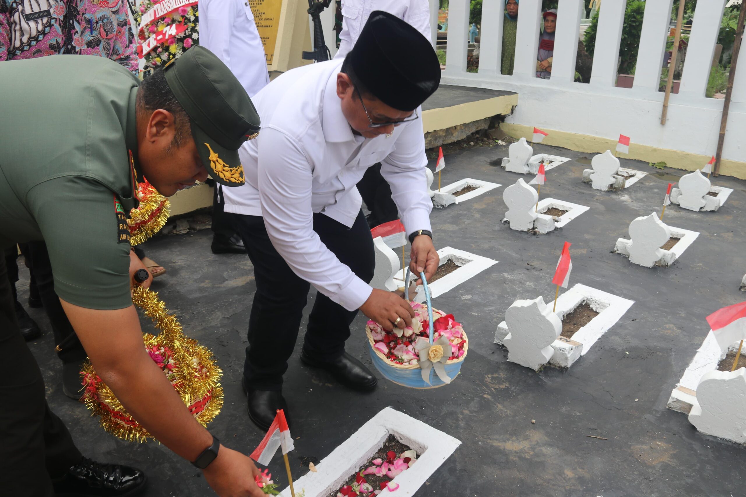 Wakil Menteri Transmigrasi Viva Yoga Mauladi dalam kesempatan tersebut selain bersilaturahmi dan sambung rasa dengan warga Indramayu juga menjadi inspektur upacara sekaligus memimpin jalannya tabur bunga.