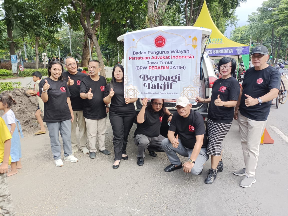 Kegiatan pembagian takjil ini hadiri oleh pengurus BPW PERADIN JATIM dan juga sebagian anggota BPW PERADIN JATIM sebagai bentuk support pada kegiatan positif ini. (Limbat)