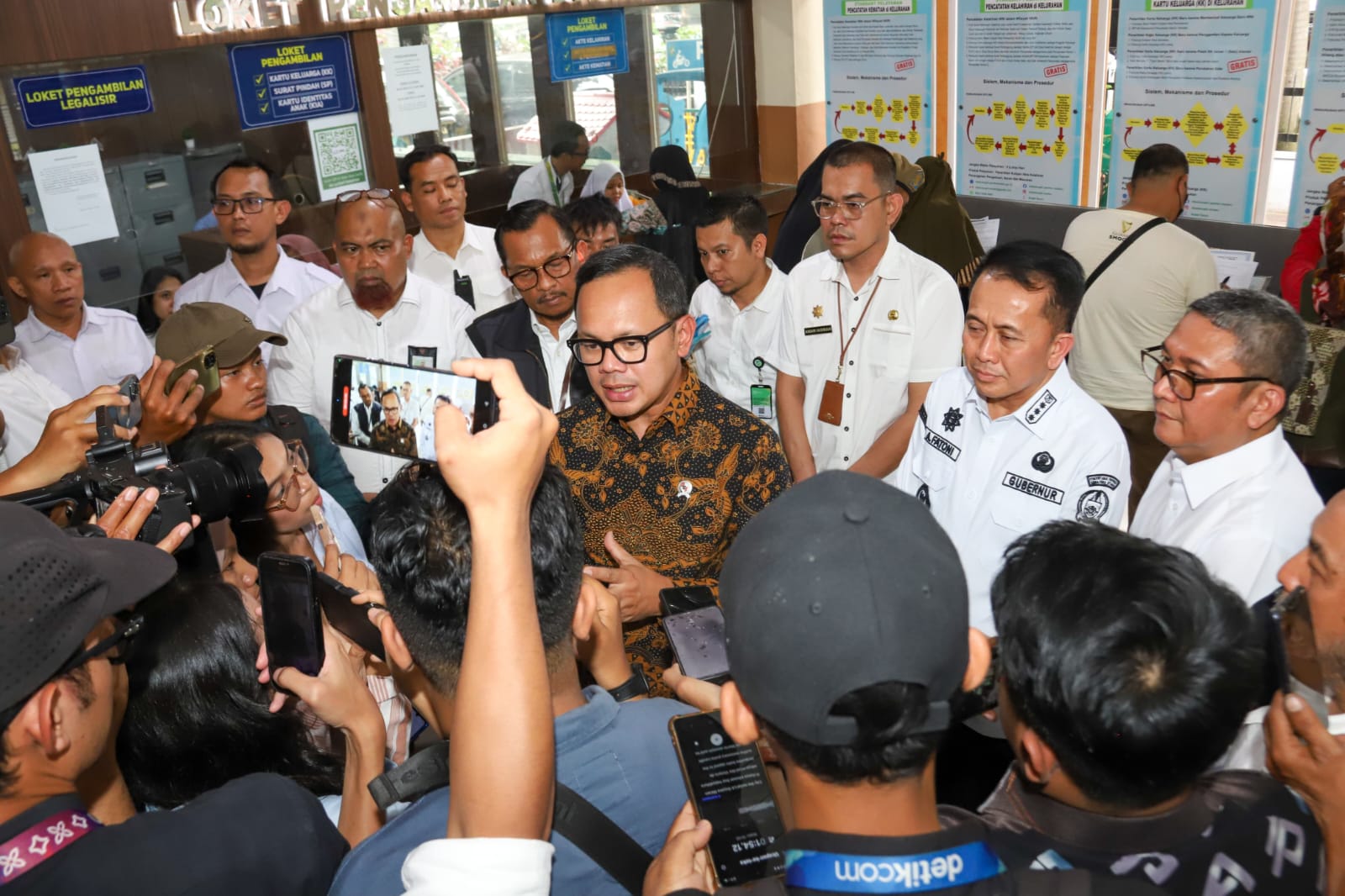 Katapublik Jatim//Medan – Wakil Menteri Dalam Negeri (Wamendagri) Bima Arya Sugiarto meninjau langsung pelayanan Dinas Kependudukan dan Pencatatan Sipil (Dukcapil) Kota Medan. Dalam kunjungannya itu, Bima mengapresiasi capaian perekaman Kartu Tanda Penduduk Elektronik (KTP-el) di Kota Medan yang tersisa 0,3 persen.
